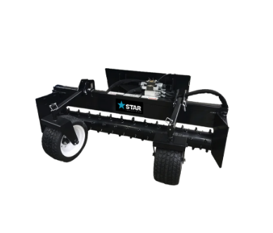 The Star Industries Skid-Steer Power Rake is a versatile attachment. It can grade, level, and recondition various surfaces and is perfect for seedbed preparation. The Skid-Steer Power Rake has a unique design that protects the motor from damage by keeping it inside the drum. The rake has a bi-directional drum with carbide teeth and side plates that can be removed. The rake also has a floating feature that keeps it level during operation.
